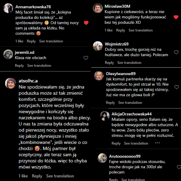 „Nie mieliśmy już nadziei na coś nowego w łóżku. Dzięki tej poduszce wszystko się zmieniło – ona była bardziej otwarta i pełna energii. Zrozumiałem, jak wiele znaczy jej prawdziwa satysfakcja.”