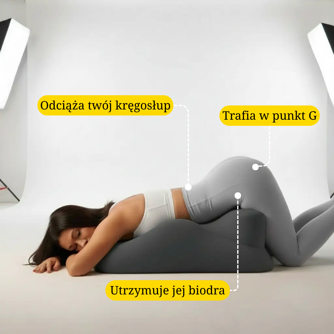 Ta poduszka wykorzystuje prostą fizykę, by zawsze trafiać w idealne miejsce. Jej kąt 27° powstał w oparciu o kobiecą anatomię, zapewniając optymalne uniesienie i naturalne dopasowanie ciał. Zwykłe poduszki się zapadają, ta utrzymuje stabilną pozycję dla większej stymulacji i głębszej satysfakcji. Koniec z poprawianiem się i niewygodą. Tylko łatwy, powtarzalny kontakt z jej najbardziej wrażliwymi strefami. Ona myśli, że stałeś się niesamowity, i dobrze, zasługa jest „twoja”.